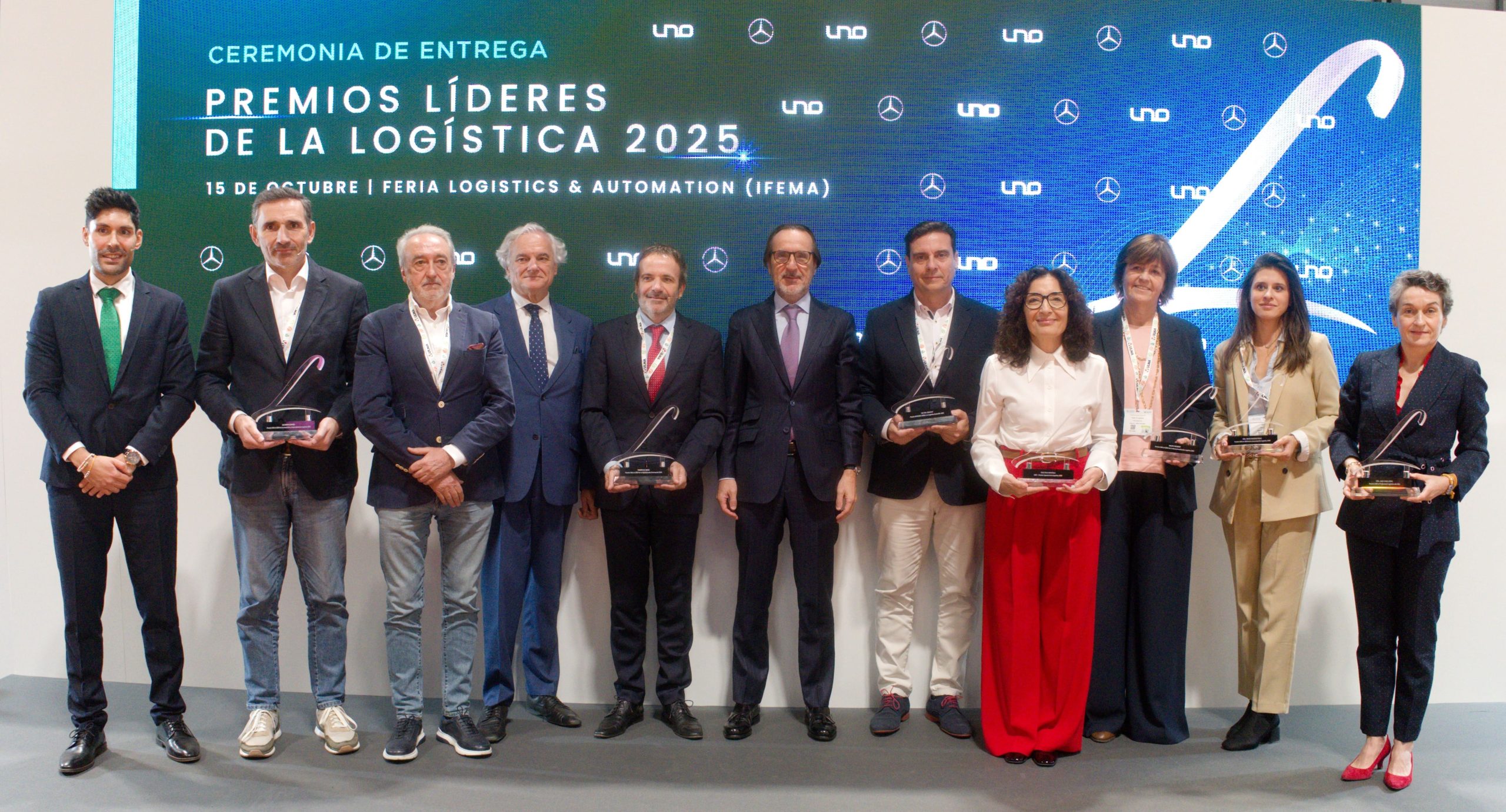 Los Premios UNO a los Líderes de la Logística 2025 han premiado también en las diferentes categorías de esta edición a Cruz Roja Española, Alcampo España, Grupo Freixenet y Puerto de Indias, junto a la presidenta del Puerto de Valencia, Mar Chao y a la periodista de The Objective, Rocío Regidor. La ceremonia de entrega de premios ha estado presidida por el vicepresidente primero de la Confederación Española de Organizaciones Empresariales (CEOE) y presidente de la Confederación Empresarial de Madrid (CEIM), Miguel Garrido; y por el presidente de la patronal logística, Francisco Aranda.